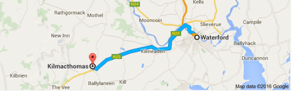 Travelling from Waterford City to Kilmacthomas by car via the N25 takes approximately 30 minutes. Please note that this route has tolls.